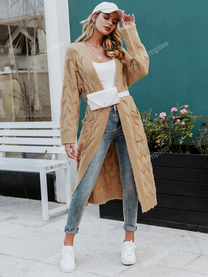 Sueter Largo Mujer Shein Sueteres Tejidos Shein Simplee Cárdigan Suéter Largo Tejido De