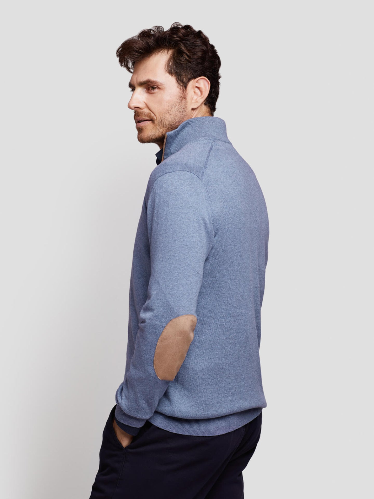 Suéter azul claro de algodón y cachemir con cuello liso con cremallera – Mr Blue
