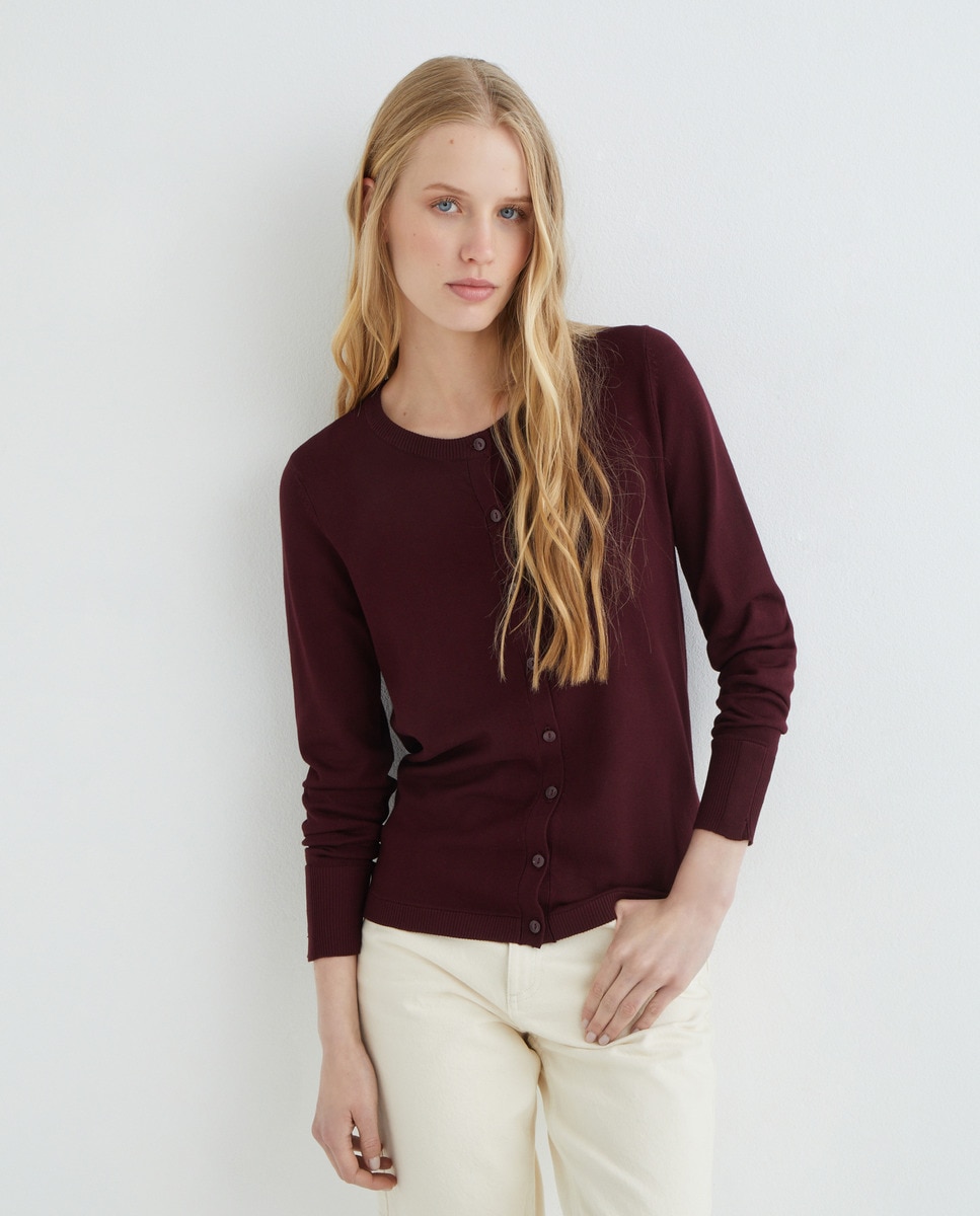 Cárdigan de mujer básico cuello caja XXL/2XL Burdeos