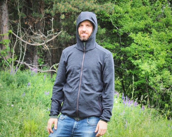 Sudadera con capucha de lana merino con bolsillos con cremallera / Suéter con cremallera para hombre 100 % lana merino / Sudadera con capucha para exteriores de fabricación justa con cremallera completa Etsy España