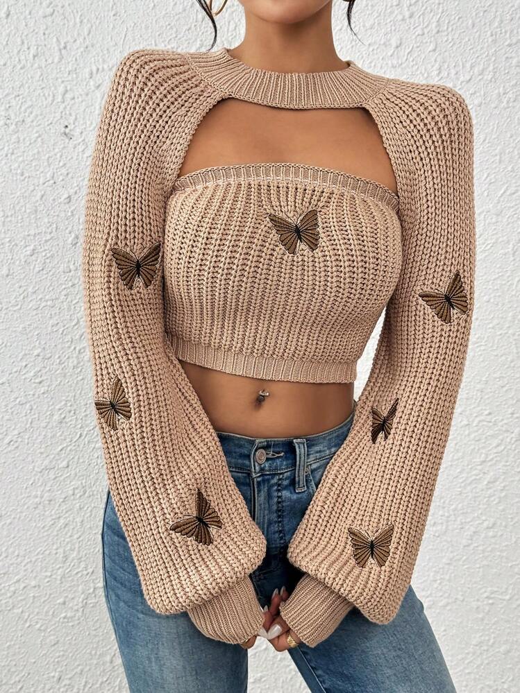 Flirla Suéter crop top de punto de unicolor, uso diario casual | Mode de Mujer | SHEIN España