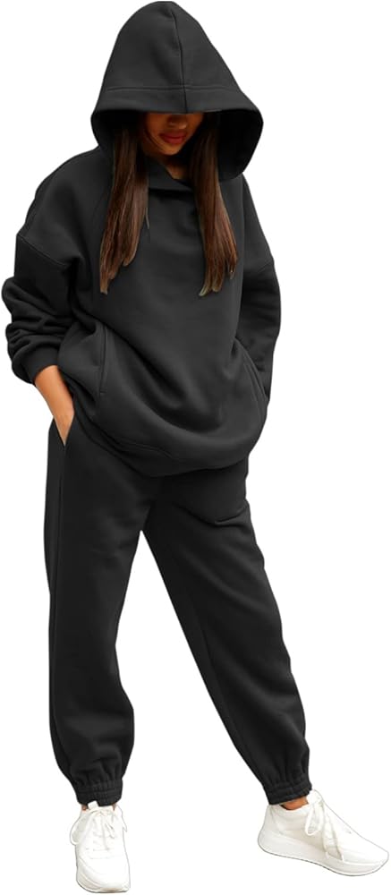 Conjunto deportivo casual para mujer, color sólido, manga larga, sudadera con capucha, pantalones, suéter, traje deportivo, traje deportivo cálido con …