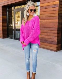 Hot Pink Sweater Outfit Con Sueter Fiusha Suéter De Chenilla De Punto Trenzado De Manga Larga
