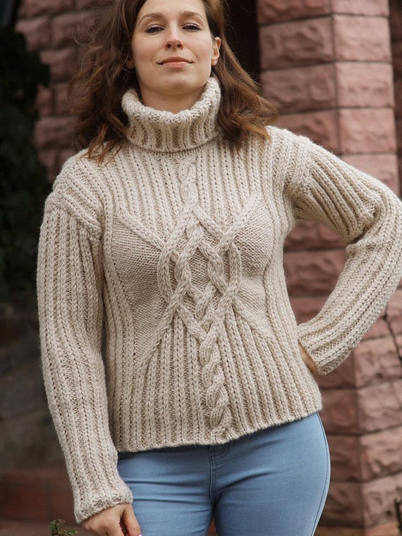 Suéter de lana para mujer Suéter de punto cable Suéter de cuello alto Jersey de lana Etsy España