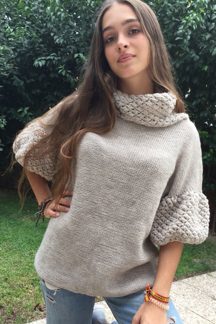 Jersey de lana con acrílico, color beige, tejido a Artesanum