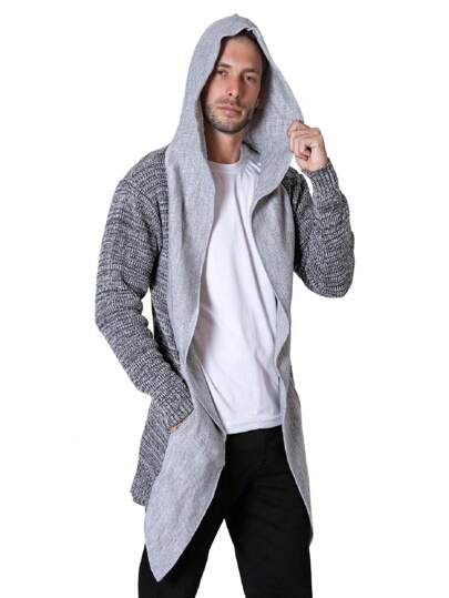 Sueter Abierto Largo Hombre Sueter Largo Abierto Para Hombre Suéter Largo Con Gorro Capucha