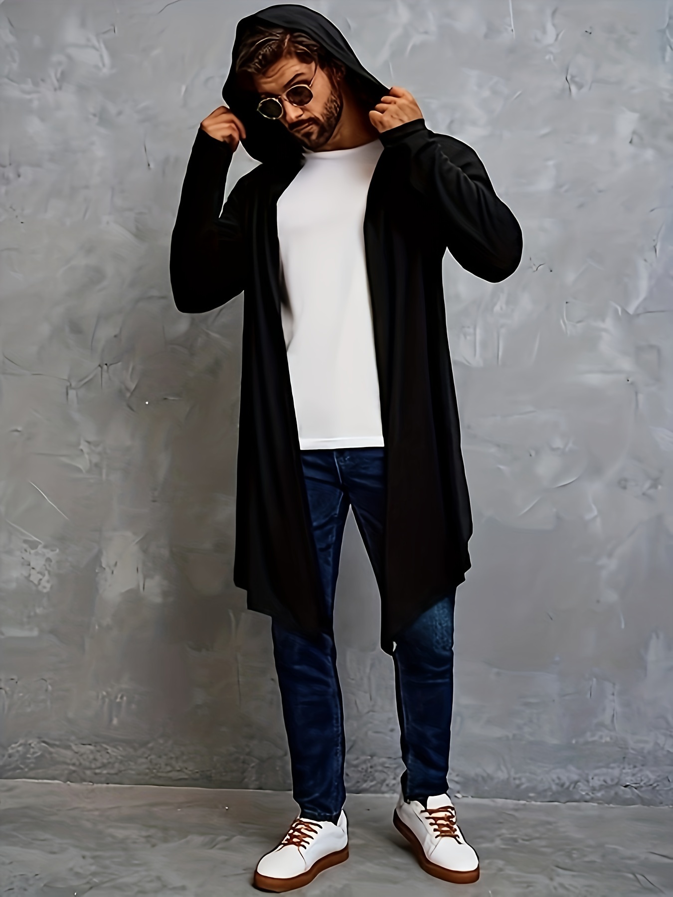 suéter capucha hombre diseño largo delantero corto trasero Temu Spain