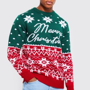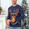 Jersey de Navidad para Hombre Rojo Árboles de Navidad y Renos