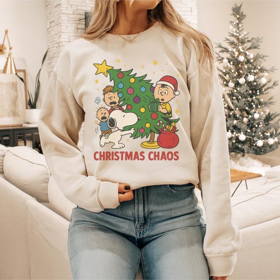 Sudadera navideña «Caos» / Suéter navideño divertido de Snoopy / Suéter navideño de Peanuts con cuello redondo / Regalo navideño adorable, Sudadera navideña de Peanuts Etsy España