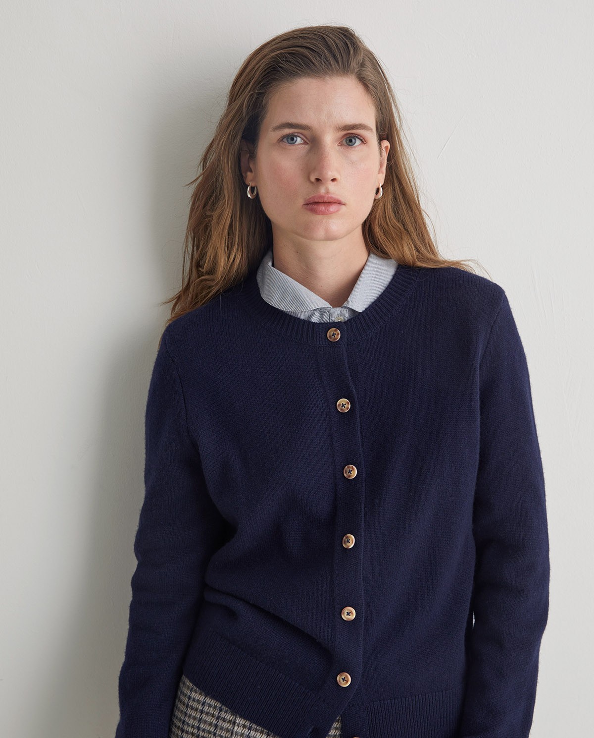 Cárdigan tipo boba mezcla lana azul marino mujer | Yerse
