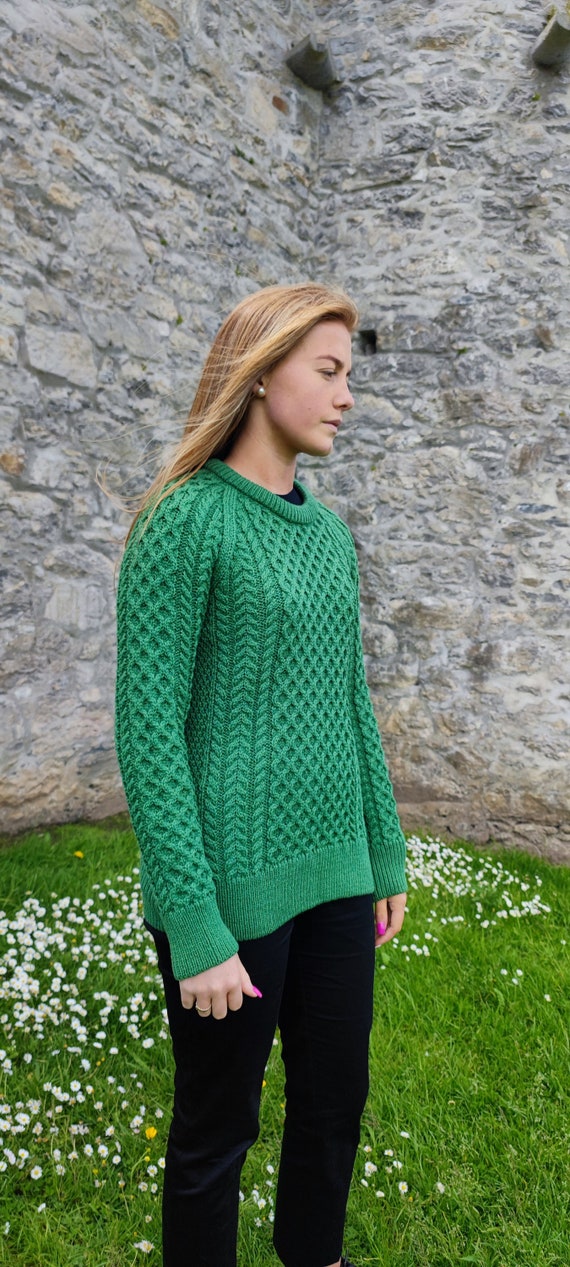 Suéter de lana merino irlandesa Aran para mujer 100 % pura lana merino Kiwi/verde hierba Cálido y grueso HECHO A MANO EN IRLANDA Etsy España